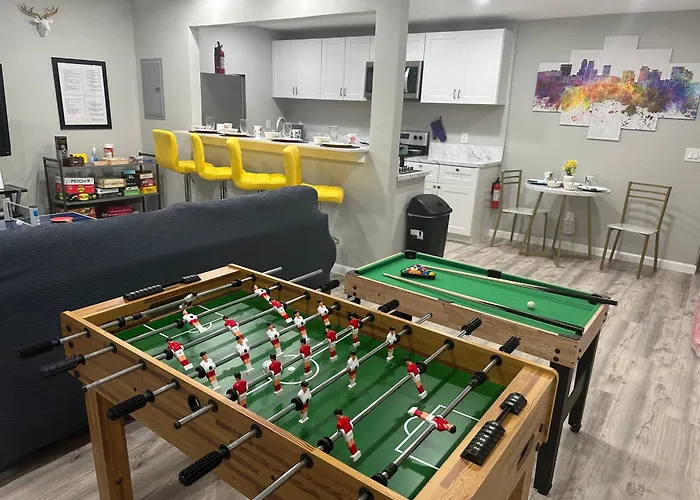 Este apartamento de 23 m², Games Haven With Crib Mins From At&T, Sixflags, Uta, Globelife, Americanairlinescenter Arlington, ofrece acceso rápido a lugares turísticos como Arlington Community Church, que se encuentra a tan solo 6 minutos a pie. Los huéspedes pueden optar por utilizar el Wi-Fi, tanto para asuntos de negocios como para entretenimiento.